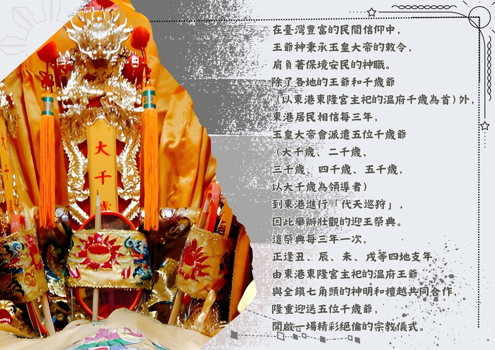 「小琉球迎王」呈現琉球島上一年一度的盛大傳統慶典,那就是迎王祭典。透過精彩的文字敘述和生動的圖片,本刊深入挖掘當地居民如何精心籌備迎王活動、傳承悠久的文化儀式,以及當地特有的慶典氛圍。 刊物內容包括迎王活動的歷史背景、信仰文化、儀式過程等等,以及參與者的真摯情感。透過深入的採訪和紀錄,我們致力於捕捉每一位參與者心靈深處的感動,呈現迎王祭典對於當地居民和遊客來說所具有的特別意義。 無論您是當地居民、文化愛好者,或是計畫前往小琉球參與迎王的遊客,本刊都將成為您深入了解、體驗這一獨特傳統慶典的不可或缺之讀物。