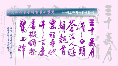 身為一個屏東鄉下的農民之子,在從戎28年卸甲歸田之後,以60歲的年齡於屏東大學視藝系碩士班研習數位媒體設計,試著以當代數位影像處理將詩詞歌謠與書法藝術,融合影音圖文以製成數位媒體電子書來呈現古今詩書合一的情境。這或可算是一個農村子弟賡續傳承與創新詩書,進而分享當代閱聽式的藝術文化,實踐文武合一、墨耕硯田的生活情趣。
