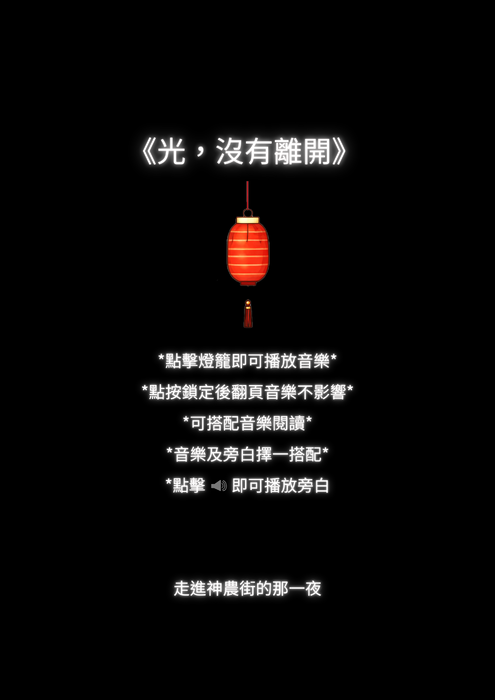 光沒有離開《走進神農街的那一夜》—以珊雨的一場夜行為起點,帶領讀者走進台南神農街微涼而溫柔的夜。街角下,一盞盞燈籠在屋簷間靜靜呼吸,映照出紅磚牆的歲月痕跡。故事穿梭於燈籠的誕生與演變,從風吹即滅的火光,到師傅以雙手記憶尺寸、以耐心裱紙上漿的細緻工序,展現傳統技藝中對時間的尊重。不同形制的燈籠,承載著福州、泉州的文化脈絡,也回應時代更迭下的新光源。當珊雨看見學生、住戶與店家共同留下的筆跡,她明白:只要燈還亮著,街就仍在呼吸,而人,也能在其中找到屬於自己的光。