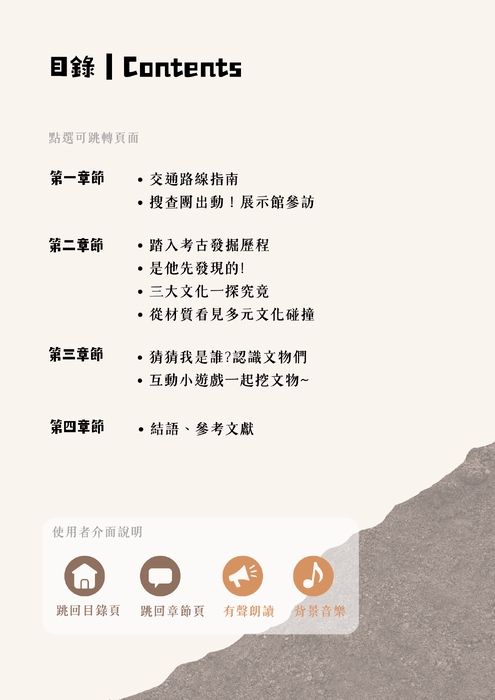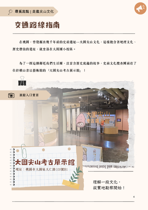 此遺址離我們的生活圈並不遠,且出土於校區,蘊含了教育推廣的價值。本團隊透過實際探訪「大園尖山考古展示館」以及資料蒐集,由歷史脈絡到文物介紹,並佐以探訪過程遊記和互動小遊戲,用輕鬆有趣的口吻來呈現這個飽含地理與歷史價值的文化。