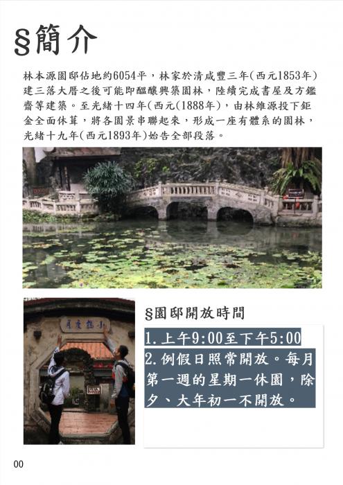 林本源園邸,位於新北市板 橋區,為板橋林本源園家族興建的房舍,仿蘇州留園設計,是目前臺灣僅存最完整的園林建築。該居可追溯至1847年,當時為林本源家族北上屯租的租館,後經林國華、林國芳兩兄弟擴建,成為林本源家族之居所。民國65年(1976年),林本源家族將庭園部分捐給當時的臺北縣政府(即今新北市政府),花園於民國75年第一次修復後收費開放參觀。第二次修復期間為86年至90年,90年8月9日重新開放,三落大厝並同時於90年7月完成修復,並配合花園開放。目前林本源園邸由新北市政府文化局負責維護與整修的工作,並為宅第類國定古蹟。