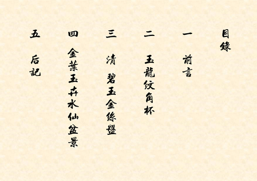 前言介绍故宫的玉器,然后以一个故宫文物管理员的身份,接近、触碰各种玉器。在接近玉器之际,透过玉器穿越到玉器当下的时代中,以“上帝视角”看玉器所经历的过程。