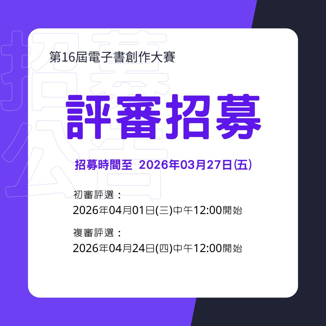 第十六屆電子書創作大賽 熱烈歡迎您參與!